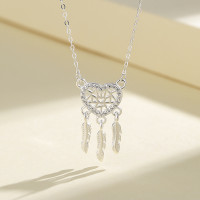 China Fashion Jewelry Supplier S925 Silver Dreamcatcher Necklace AAA Cubic Zirconia.