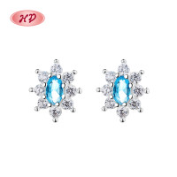 Blue Flower Cubic Zircon Vintage Classic For Ladies Vintage Fashion Jewelry Stud Earrings