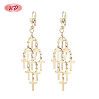 - 2024 New Arrival Fashionable Religious Brass 18K Gold Cross Lover Dropped Earrings