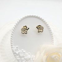 18K Gold Plated Animal Stud Earrings Cubic Zircon Cute Elephant Design Women's Jewelry Wholesaler