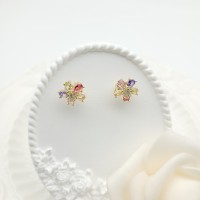 Flower Stud Earrings 18K Gold Plated Inlay Cubic Zircon Women's Jewelry Factory Direct Sales