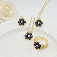 - Elegant Wholesale Jewelry Set For Women 18K Gold-Plated Flower Pendant Earrings With AAA Zircon