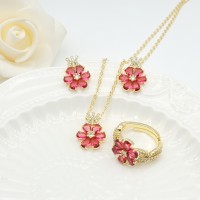 Flower Stud Earring Jewelry Sets Cherry Blossoms&Plum Blossoms Design 18K Gold-Plated Aaa Zircon Women's Jewelry Factory Direct Sales