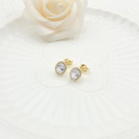 Monozircon Stud Earring Classic Design Elliptical Independent AAA Zircon 18K Gold-Plated Women's Jewelry Factory Direct Sales