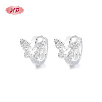 Animal Huggies Earrings 925 Sterling Silver Hollow Butterfly AAA Cubic Zirconia Jewelry