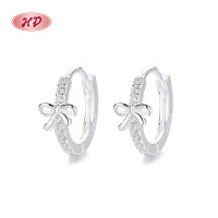 Wholesale Charming Huggies Earrings with a Bow Design and AAA White Zircon sparkle.