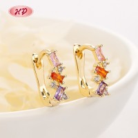 Colorful Geometric Irregular 18k Gold Hoop Earrings | Wholesale Trendy Zircon Jewelry by Hengdian for Daily Accessory