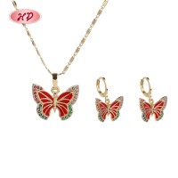 Vintage 18K Gold-plated Butterfly Necklace & Earrings Set for Women | Copper Alloy Women's Wedding Colorful Jewelry Set